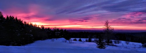 Photo qui coiffe le tout: Lever du jour vu de la maison dans le rang. Cliquez sur l’image pour l’agrandir.