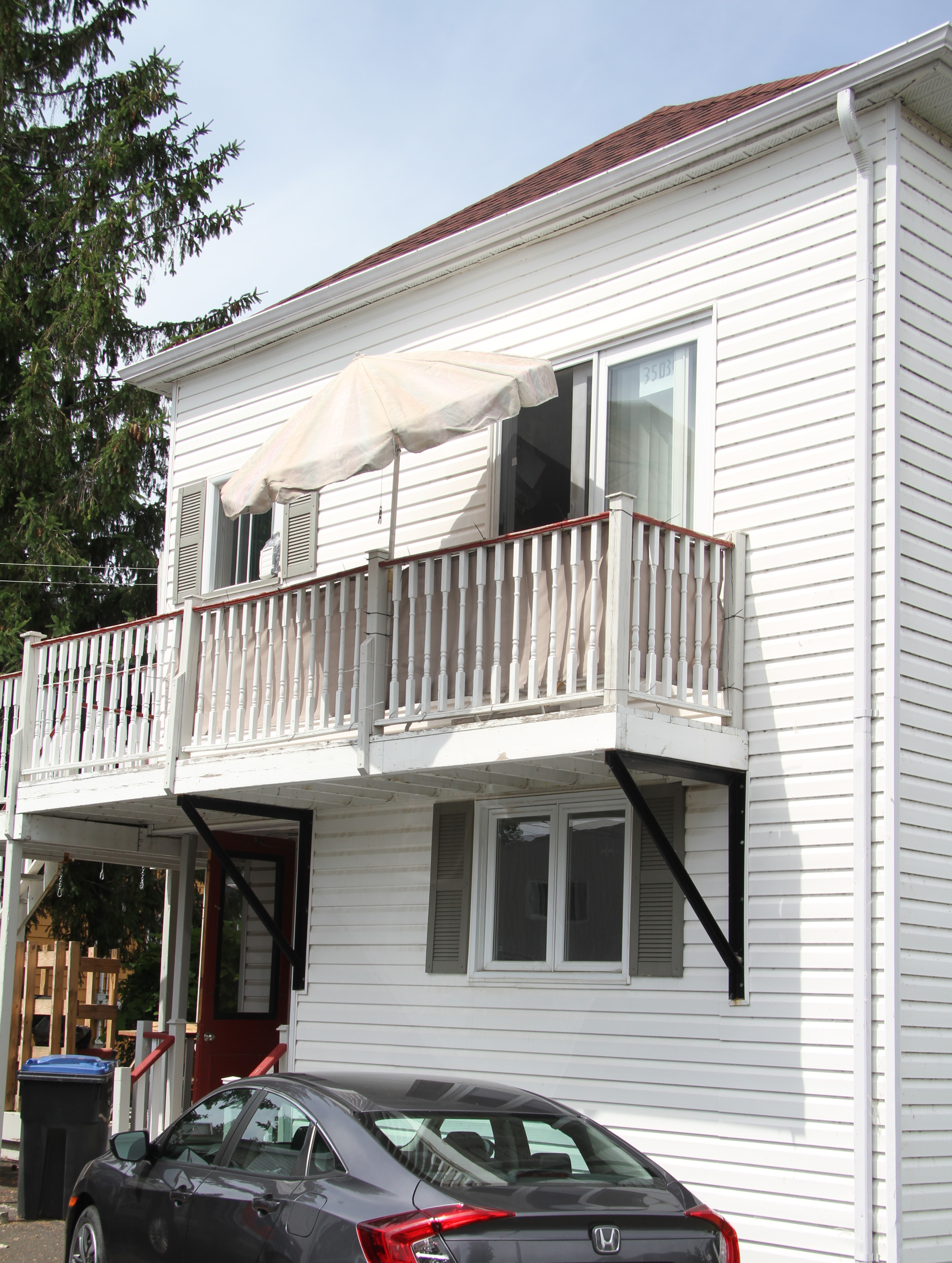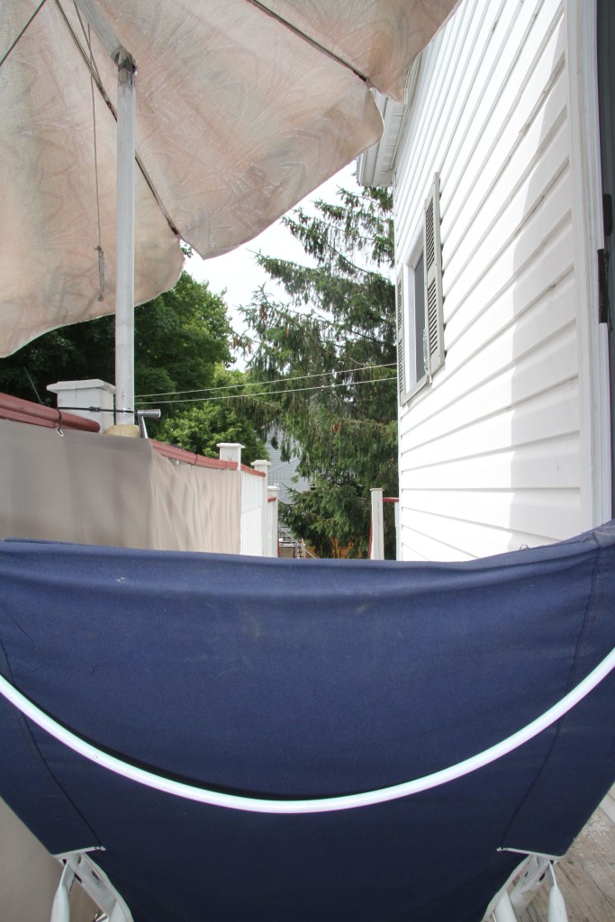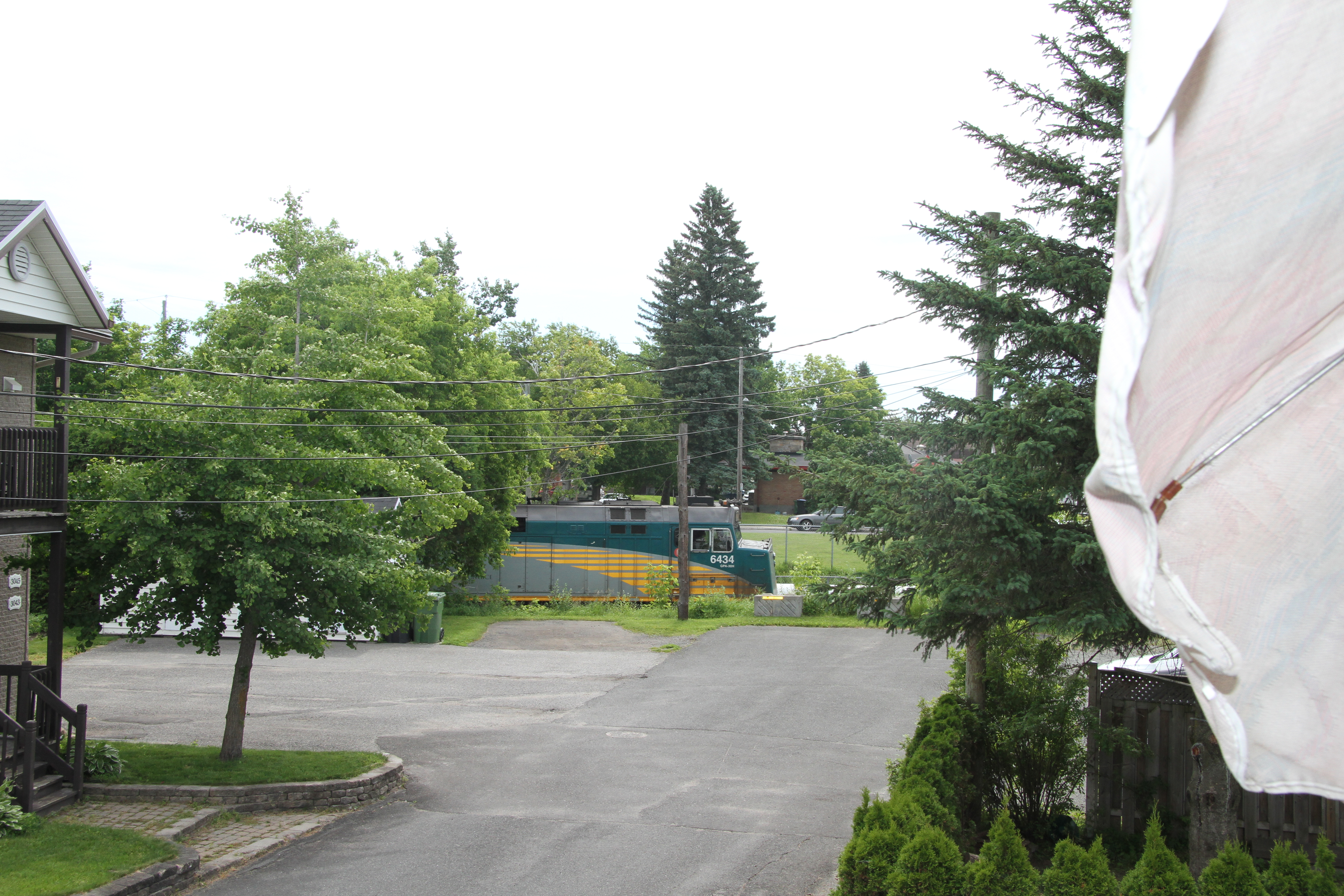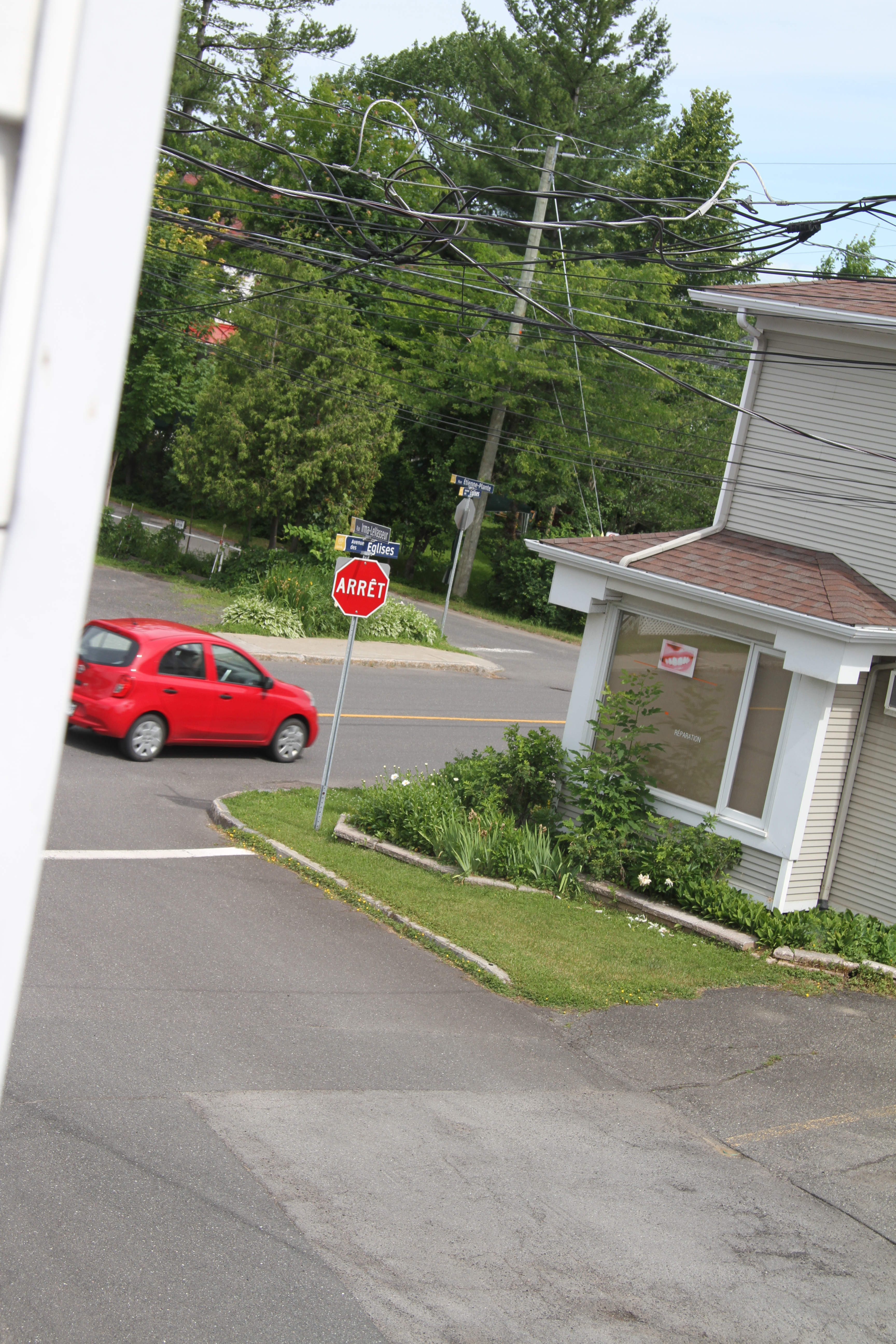 Pourquoi cette description géographique de mon lieu de résidence? Vous aurez deviné qu’il y a en face de chez-moi une route provinciale et derrière une rail de chemin de fer. La vue de mon balcon situé à l’arrière, comme vous le voyez sur les photos, donne sur beaucoup d’arbres. On a pas l’impression d’être au centre-ville de Charny.