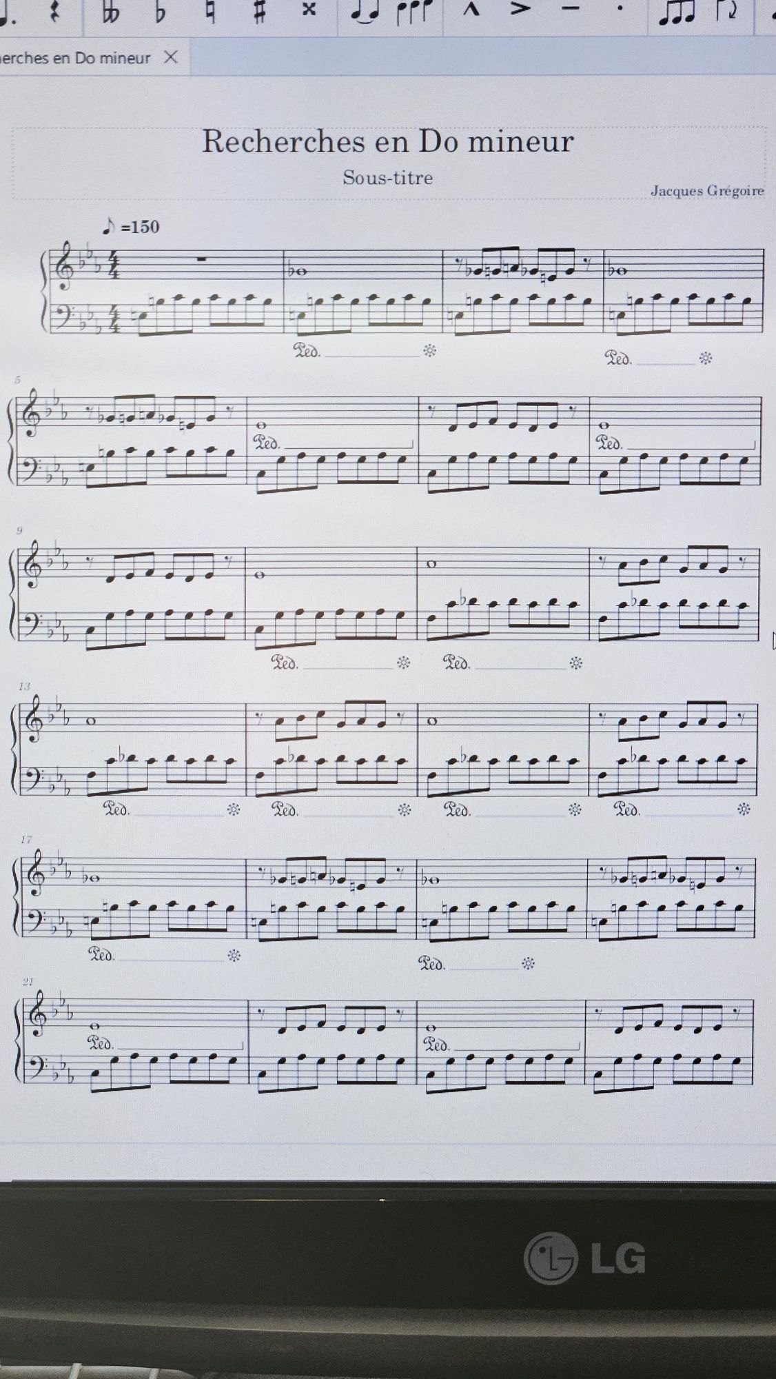Vous avez ici un aperçu de mes Recherches en Do mineur. La premiÚre page de la partition seulement, le reste à suivre. Et un enregistrement de la dite piÚce.