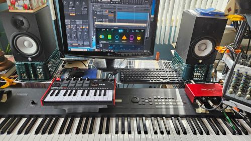 Lorsque j’improvise au piano le résultat est quasi immédiat. La quincaillerie musicale capte le tout et je n’ai qu’à bidouiller le tout avant de publier sur WP. En deux temps sans mouvement ni croche. Voici venu le temps de réaliser un projet multi-instrument. Je peux jouer guitare et claviers depuis des lustres. Mais l’acquisition d’un clavier contrôleur midi me permet maintenant d’ajouter un orchestre au complet. Il me fallait donc reconnaître toutes les ficelles à tirer pour que toute cette belle panoplie d’instruments fonctionne en harmonie. Il y en a quatre que j’utilise aujourd’hui..
